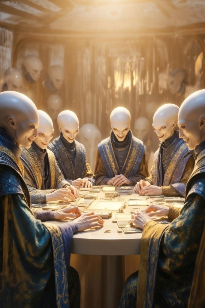 An AI-generated illustration of what the Anakh Imperial Council on Ashtari may look like. I gave them all a smile 🙂