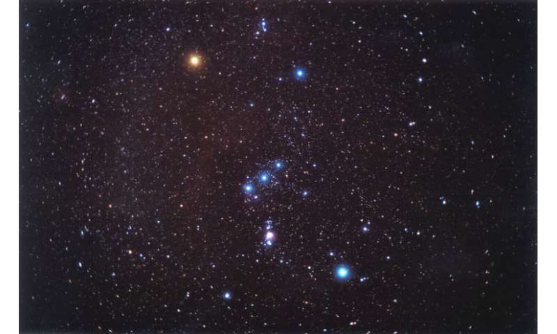 This post you are reading now gives you some background on Betelgeuse, the Hive Mind, the Eban and the Orion Nebula. Let’s start with identifying the red star Betelgeuse in the Orion system. In the image (3) you can see the star in the upper left corner.