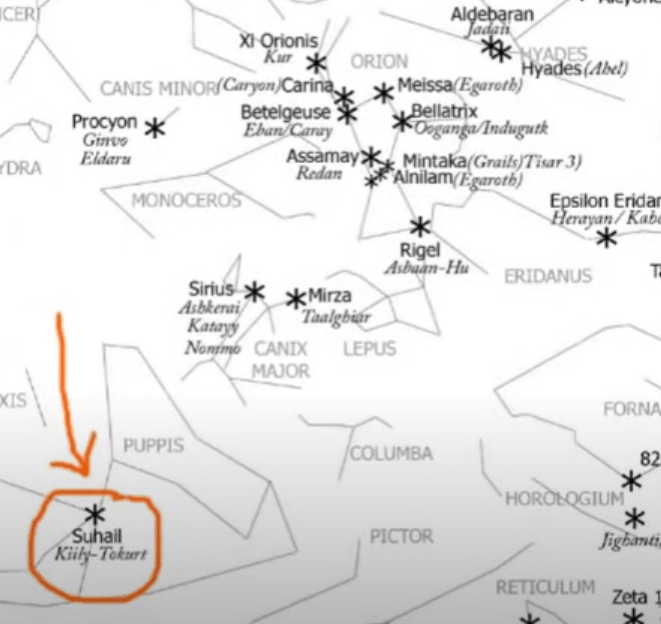 As you can see in the map on the left hand side, you can track the star by starting from the belt of Orion, and extend the line to Sirius and then take a bend of about 30 degrees where you meet Suhail. It would be hard to see this star from the Northern hemisphere.