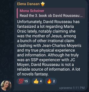 (23) Telegram groups: Galactic Anthropology (general updates), Galactic Anthropology Study Group (most active group with hundreds of separate discussion topics) Alex Collier and Andromedans Study Group and the Galactic Anthropology Library. Elena Danaan also has her own telegram channel and even her own open telegram chat group.