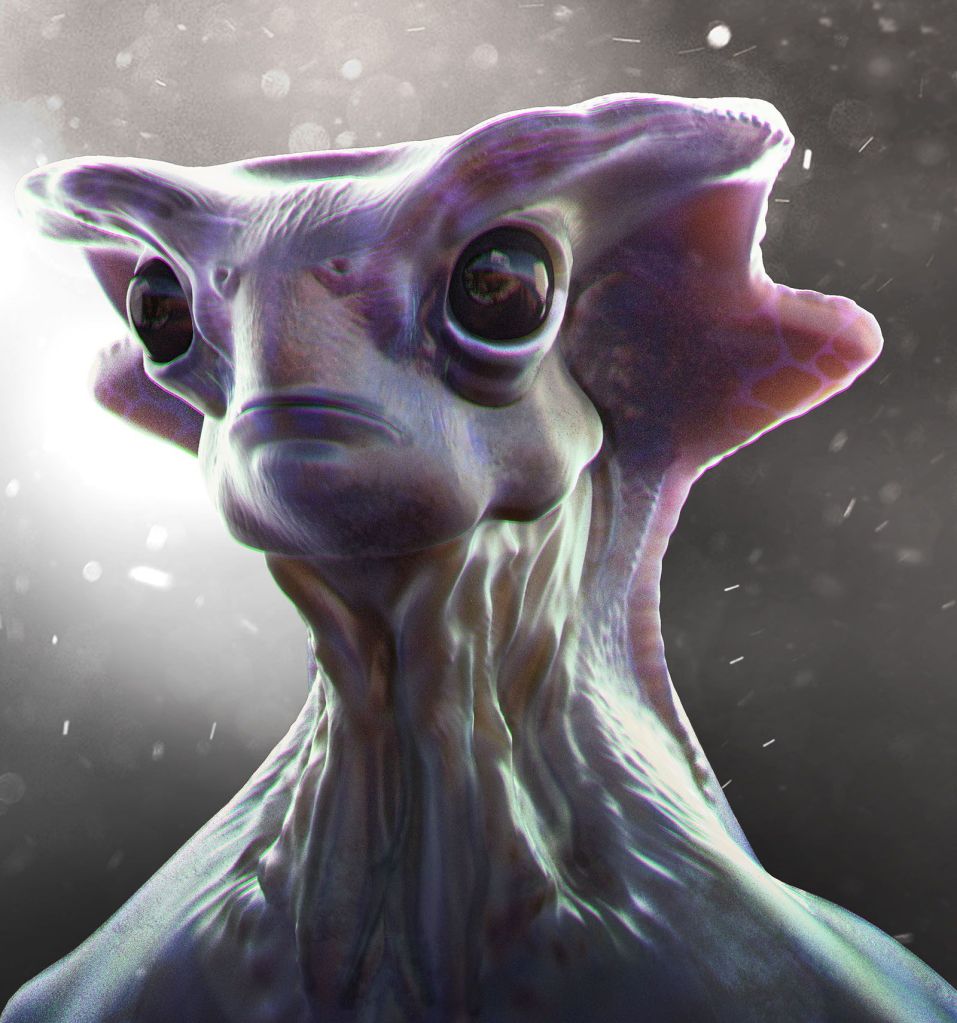 - He talks about a kind of (pattern recognition) overload of his brains because they have a hard time processing all those awkward looking species. This could lead to headaches and migraines. (18′) Sometimes the brain cannot decode an alien face and you only see a blur for a while. Sometimes the brain just gives up completely and comes up with just something that looks a bit like it from its own memory, like a scarecrow or Mohammed Ali.