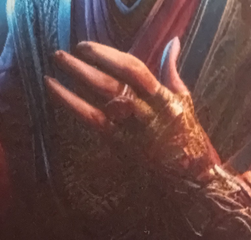 A four-fingered hand, part of an illustration by Elena Danaan of the Ye Hatarin (21, 1, p.228)