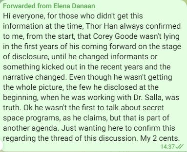 (3) The Early Testimonies of Corey Goode – You can read another confirmation of this in this message from Elena Danaan in the Exopolitics Today Chat group on April 1, 2024. You can only enter this group by commenting on articles on Dr. Michael Salla’s telegram channel