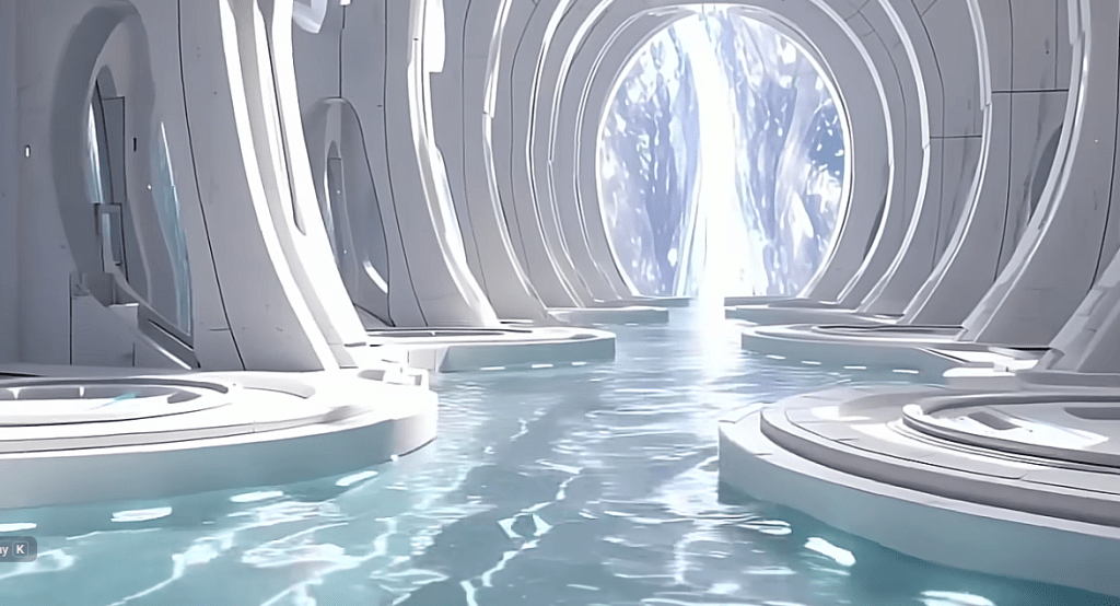 Then she was welcomed by Alex Collier, who was wearing a blue jumpsuit, who showed her around. When back on Earth they shared and confirmed the characteristics of the colors and the smells within the ship. She goes on to describe the basins and the water that seemed to interact with her.
