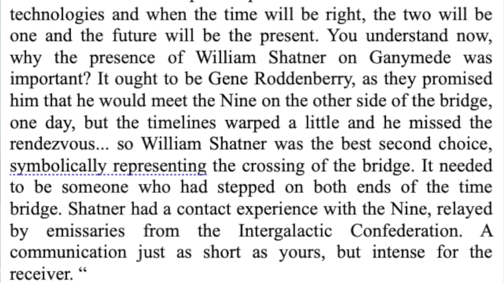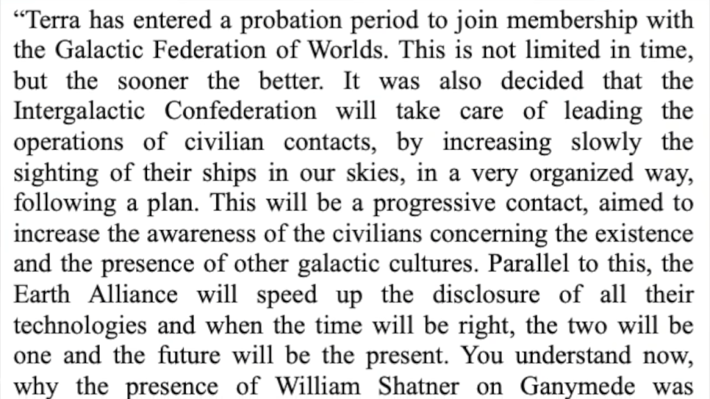 This prompted Dr. Salla to remind him of his visit to Ganymede. Would he have visited that Jovian moon with his own body or with one of these ‘clone-like’ machines. I added a relevant part to the Ganymede page (5).