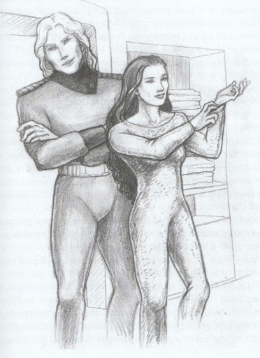 “It wrapped my shape perfectly, becoming like a second skin. The material was quite elastic so it didn’t need any zip or buttons. Once ‘fitted’, it regulated my body temperature, which was a relaxing and soothing sensation. What an exquisite material! This fabric seemed animated with a basic artificial intelligence. Thor Han caught my thoughts and answered with amusement: ‘It monitors your body functions and keeps you healthy’, he said. ‘It can also regenerate your tissues if you are hurt, and modigy your blood chemistry to adapt to different environments.” (9, p.152)